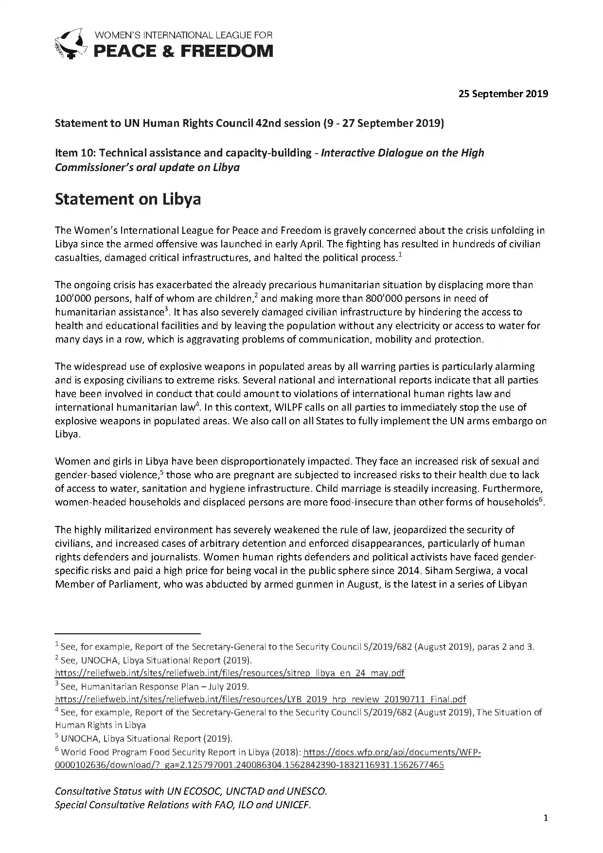 The Women’s International League for Peace and Freedom is gravely concerned about the crisis unfolding in Libya since the armed offensive was launched in early April. The fighting has resulted […]