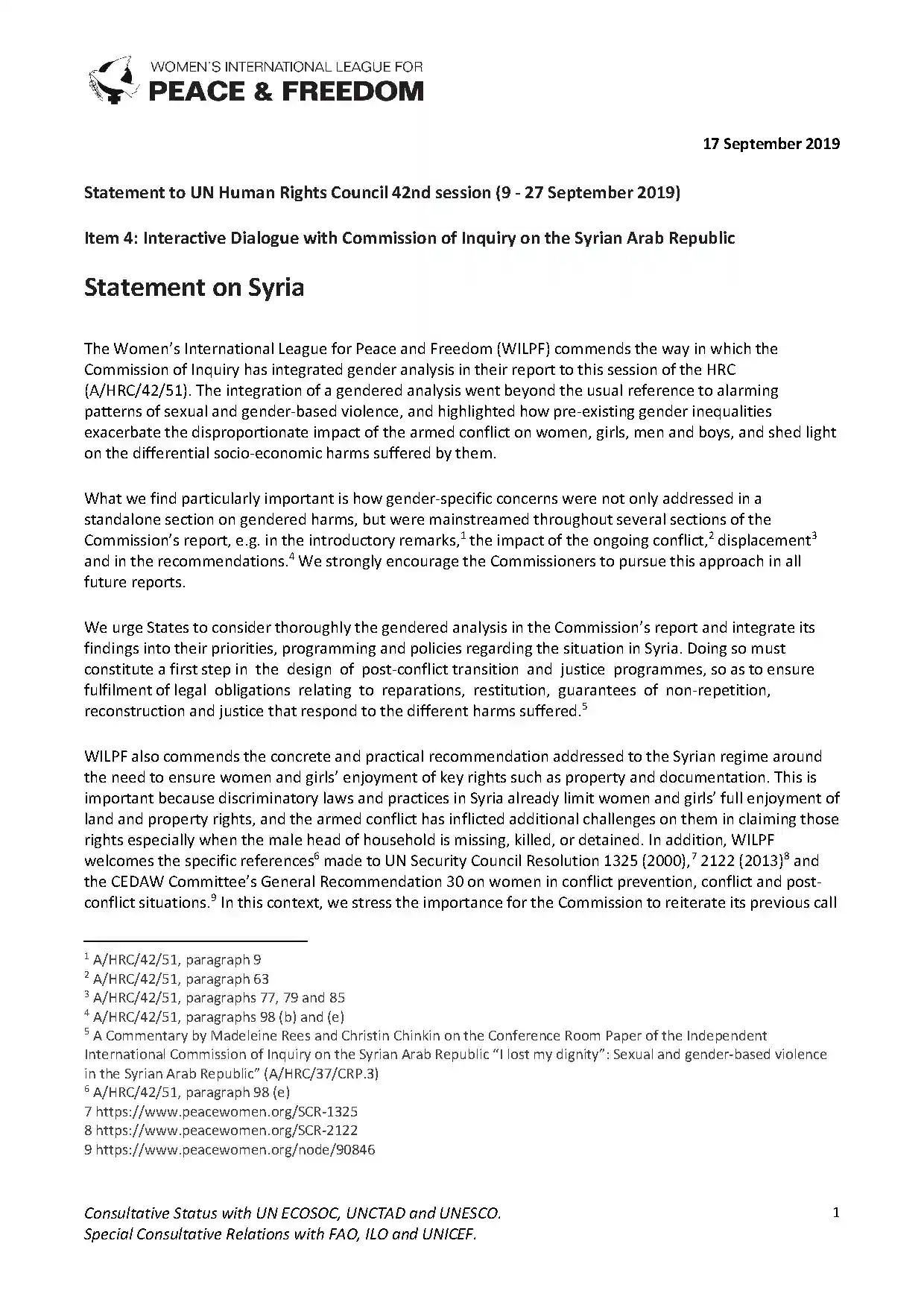 HRC42: Statement on the Report of the Commission of Inquiry on Syria