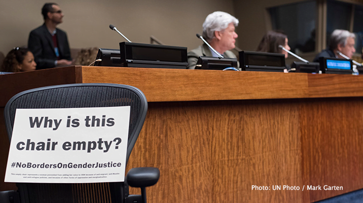 The issue gained significant visibility among civil society, with some of our partners (MADRE, Just Associates (JASS), CWGL, AWID, Urgent Action Fund, Women in Migration Network and Outright Action International) spearheading the #NoBordersOnGenderJustice Initiative and a rally, as well as statements from parallel and side event speakers noting the impact of the absence of #MissingVoices. This included an initiative which set aside empty chairs on panels to bring attention to the fact that not everyone was there, and the need for women facing multiple discriminations to be at the center of conversations on human rights at the CSW and beyond.