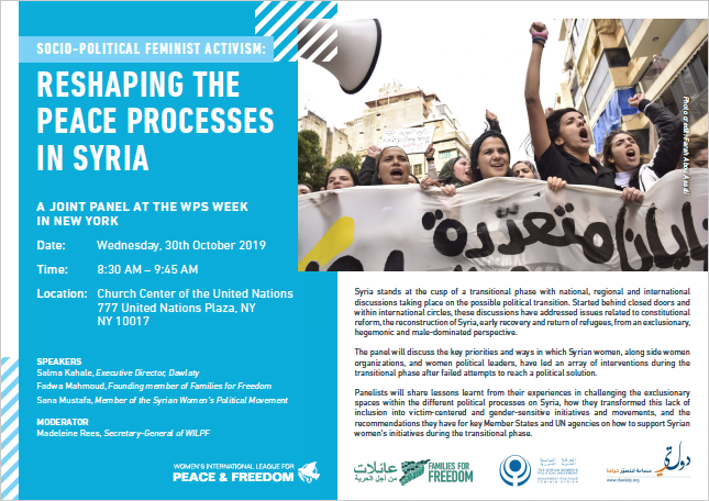 Panelists will share lessons learnt from their experiences in challenging the exclusionary spaces within the different political processes on Syria, how they transformed this lack of inclusion into victim-centered and gender-sensitive initiatives and movements, and the recommendations they have for key Member States and UN agencies on how to support Syrian women’s initiatives during the transitional phase.