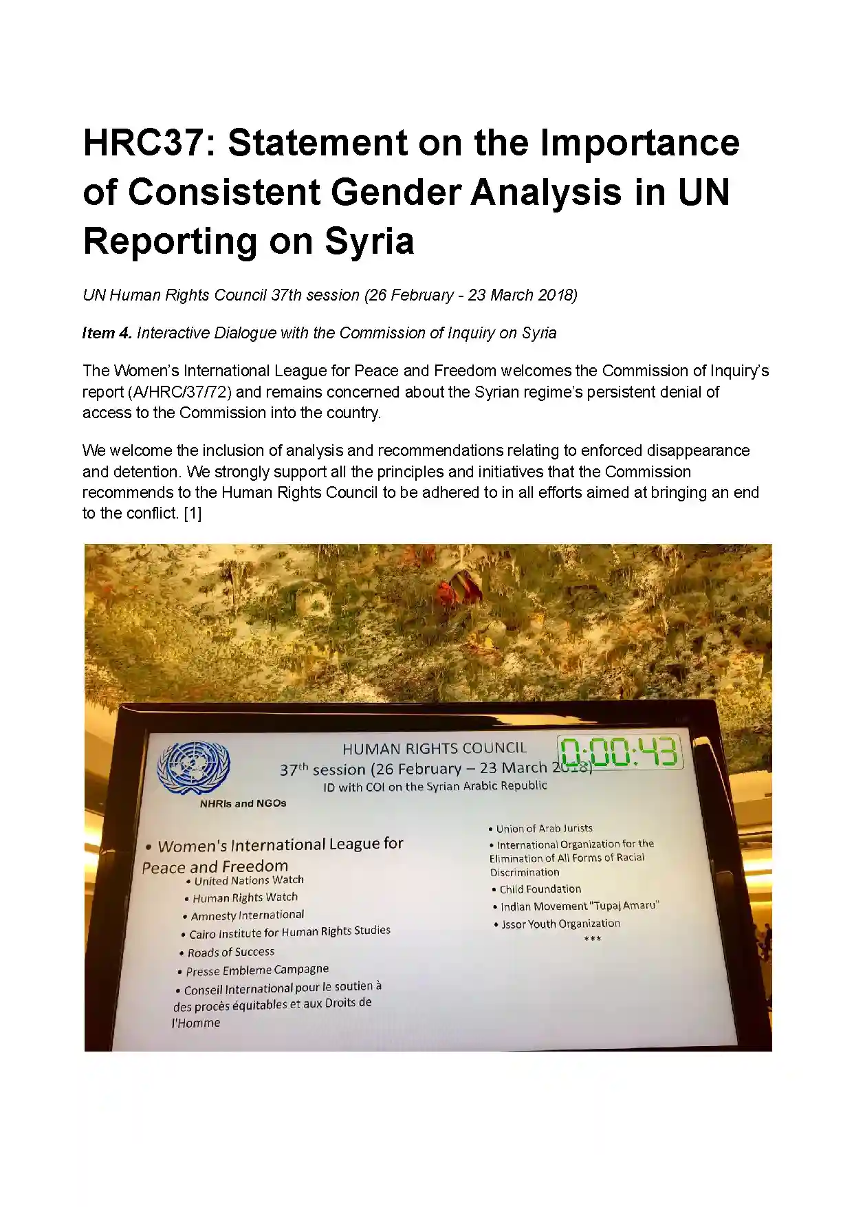 HRC37: Statement on the Importance of Consistent Gender Analysis in UN Reporting on Syria
