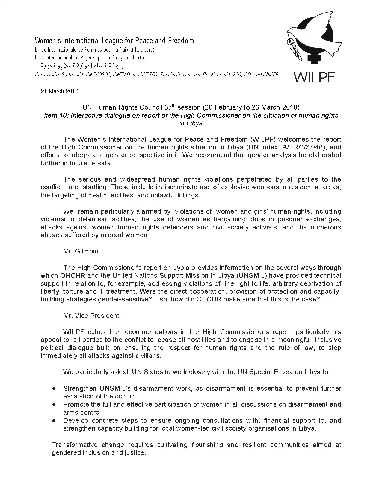 This statement was made at the UN Human Rights Council (HRC) 37th session, during the Interactive Dialogue with the Commission of Inquiry on Syria. The Women’s International League for Peace […]