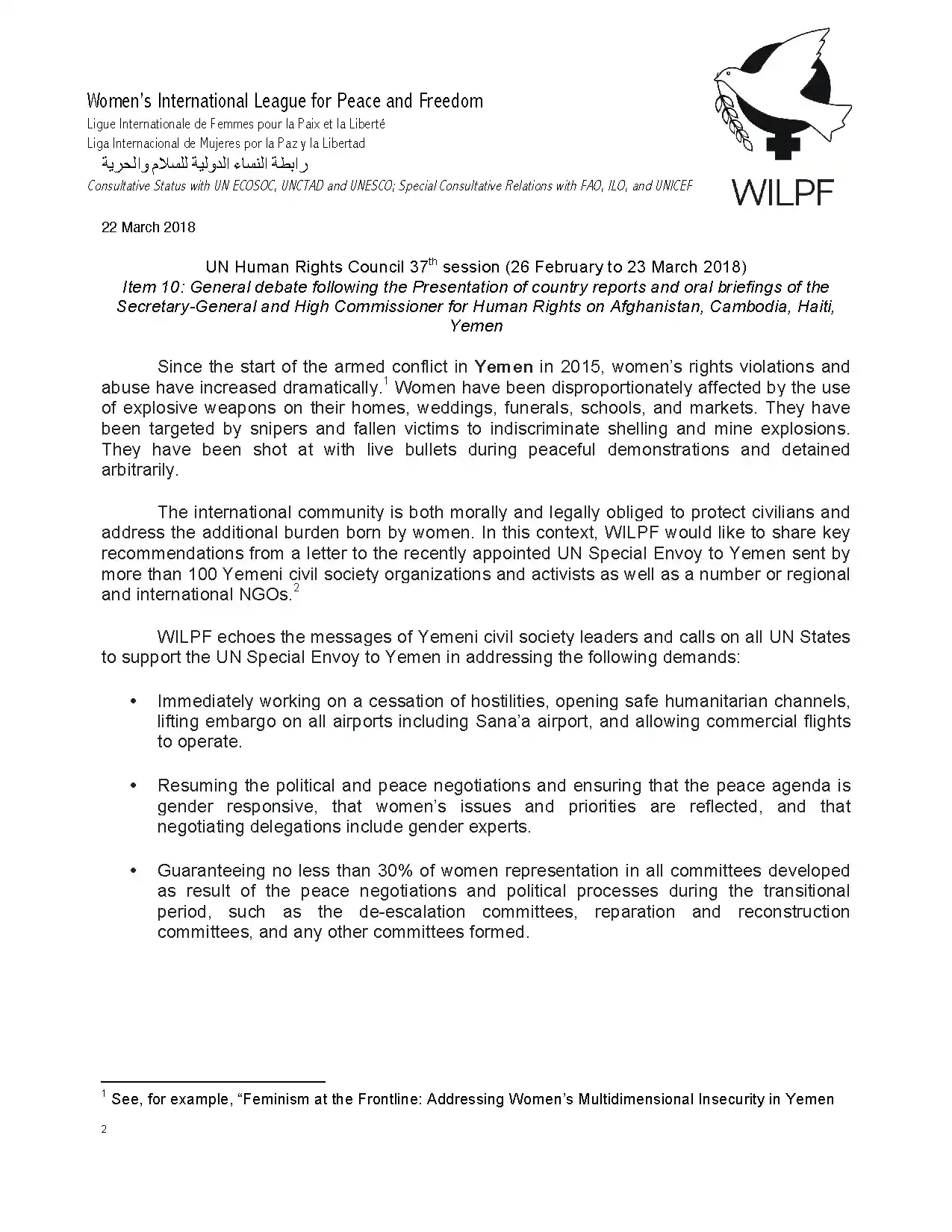 This statement was made at the UN Human Rights Council (HRC) 37th session. Since the start of the armed conflict in Yemen in 2015, women’s rights violations and abuse have […]
