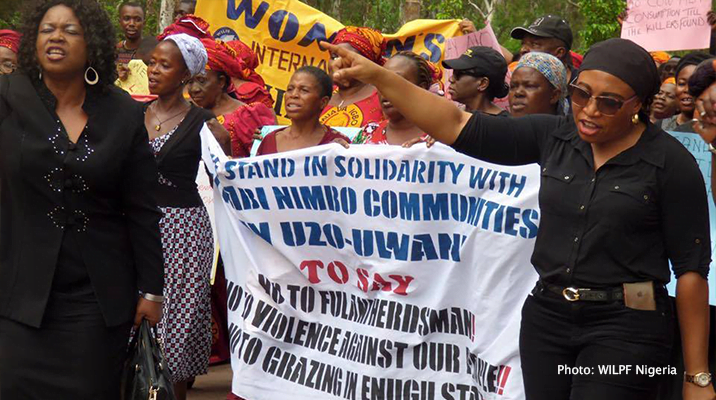 On 3 May, WILPF Nigeria gathered 13 civil society organisations and supporters to protest against a recent massacre carried out by armed Fulani herdsmen in Enugu State in the southeast part of Nigeria. The massacre, which is part of an increased number of deadly attacks by Fulani herdsmen, happened on 25 April and claimed several lives and forced people to flee their homes.